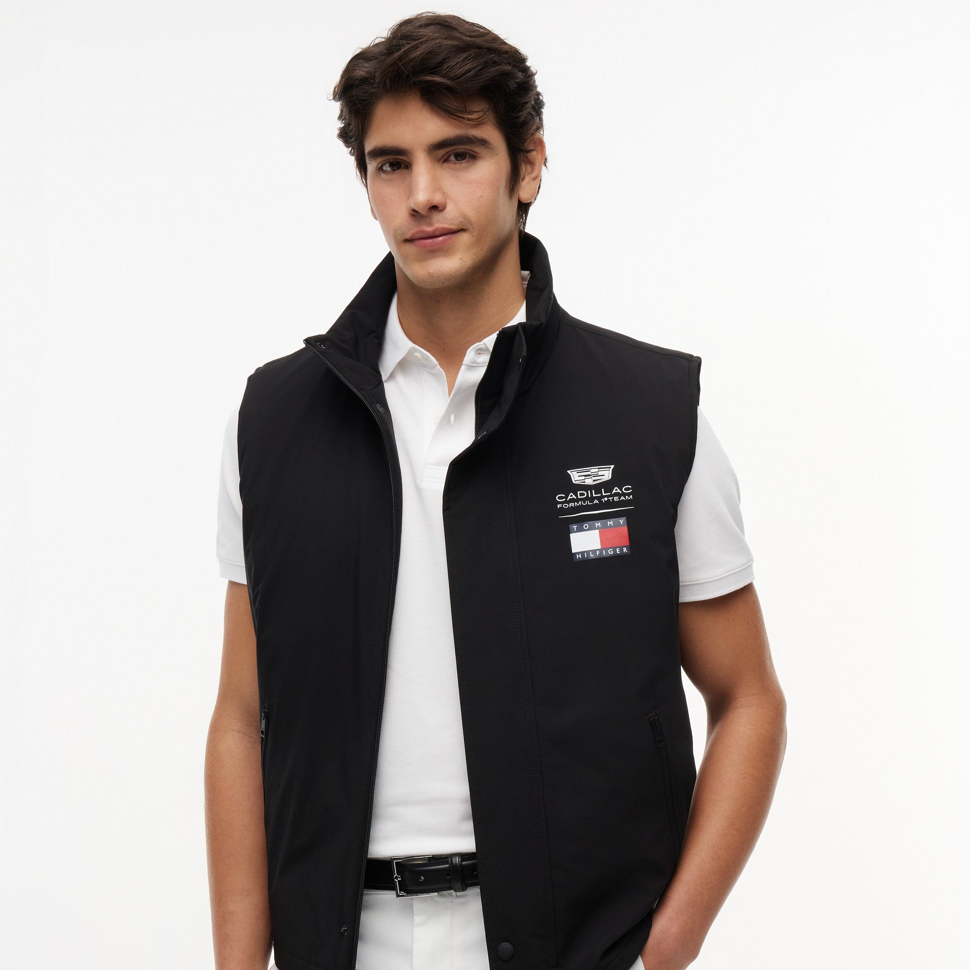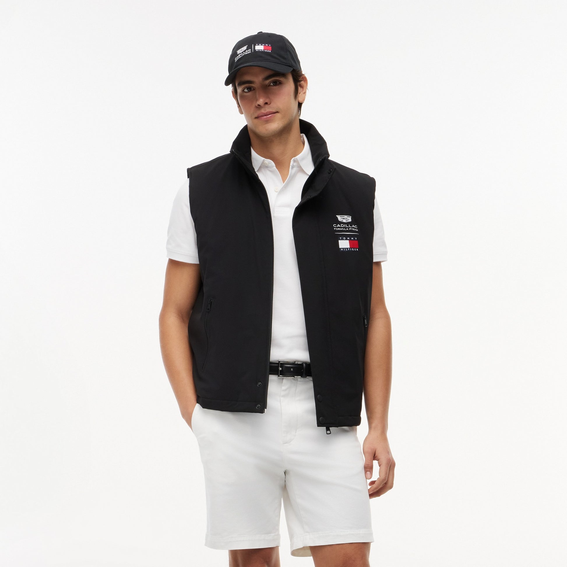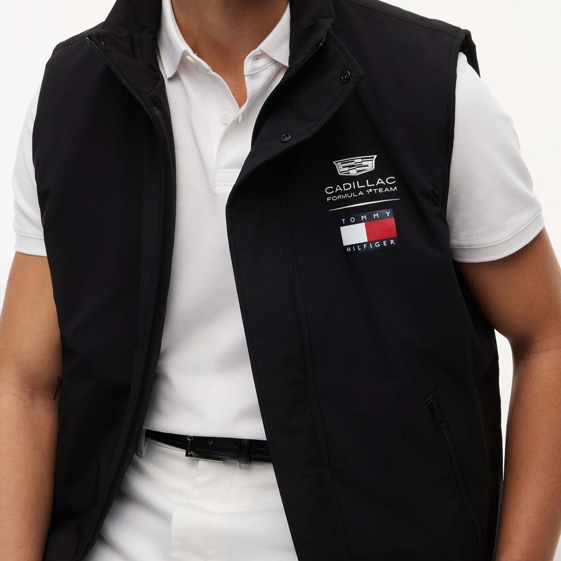 Layer up in style with the Cadillac F1 x Tommy Hilfiger Logo Gilet for Men in sleek black. This premium men’s gilet blends motorsport design with Tommy Hilfiger’s signature quality for a standout look.