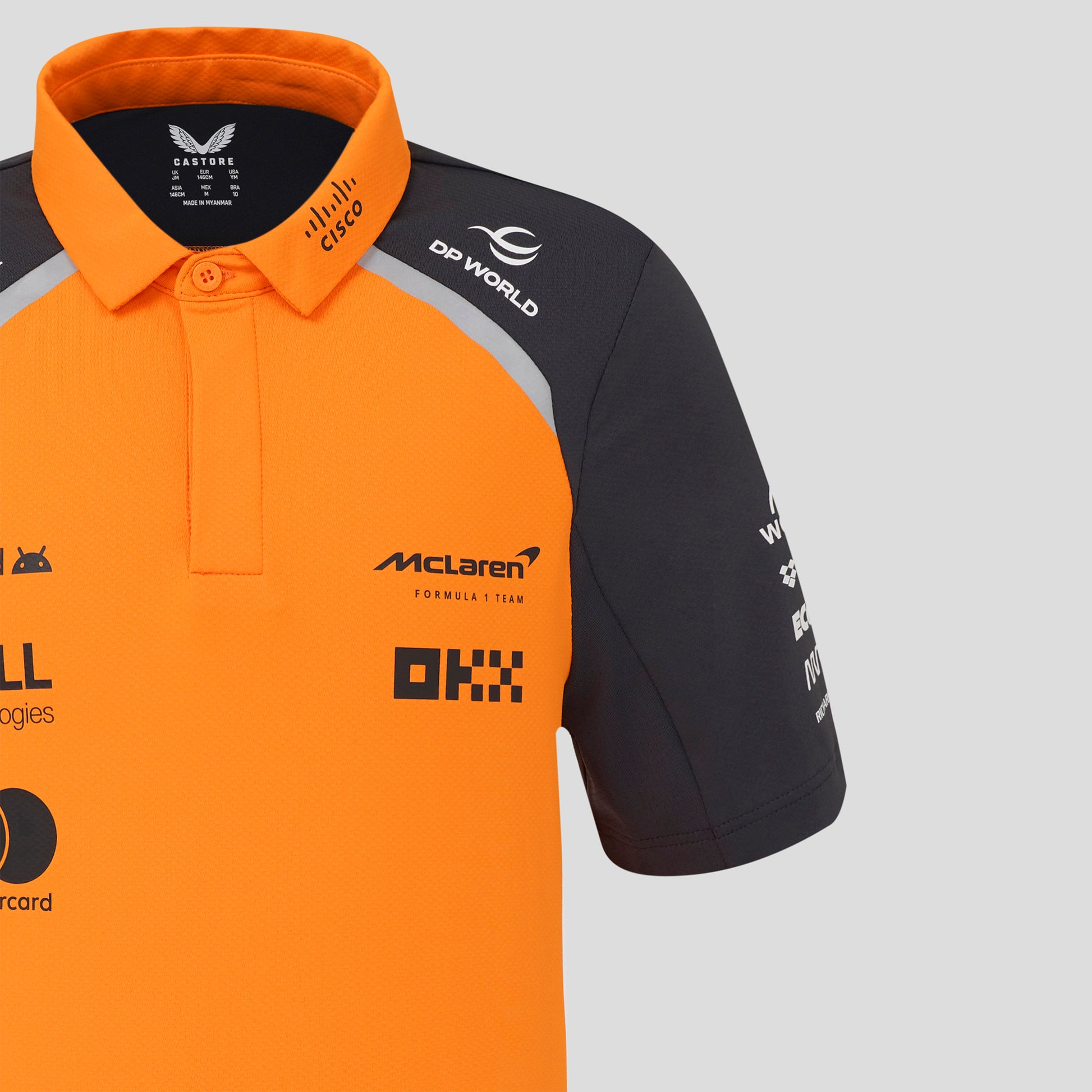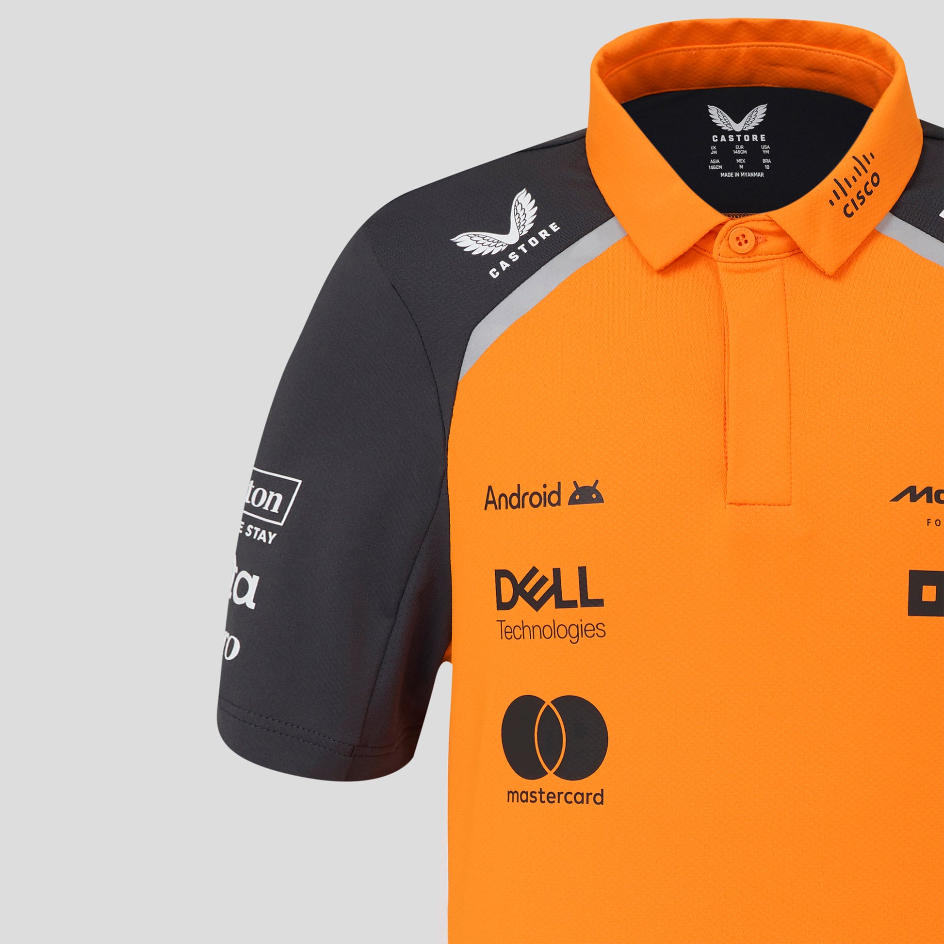 McLaren Racing F1 will look to collect consecutive constructor championships in 2025, join them on their journey with the Official McLaren Formula one Kids Team Polo. Both Lando Norris and Oscar Piastri will be sporting this polo in interviews and in and around the paddock this F1 season.