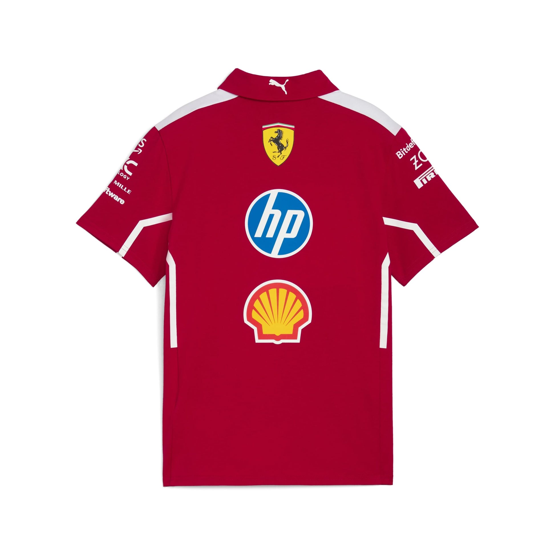 Official Ferrari Formula One Team Polo Shirt. As worn by the Ferrari F1 Team during the 2025 F1 World Championship. Collar up or collar down, you'll mean business in this official Ferrari Polo.