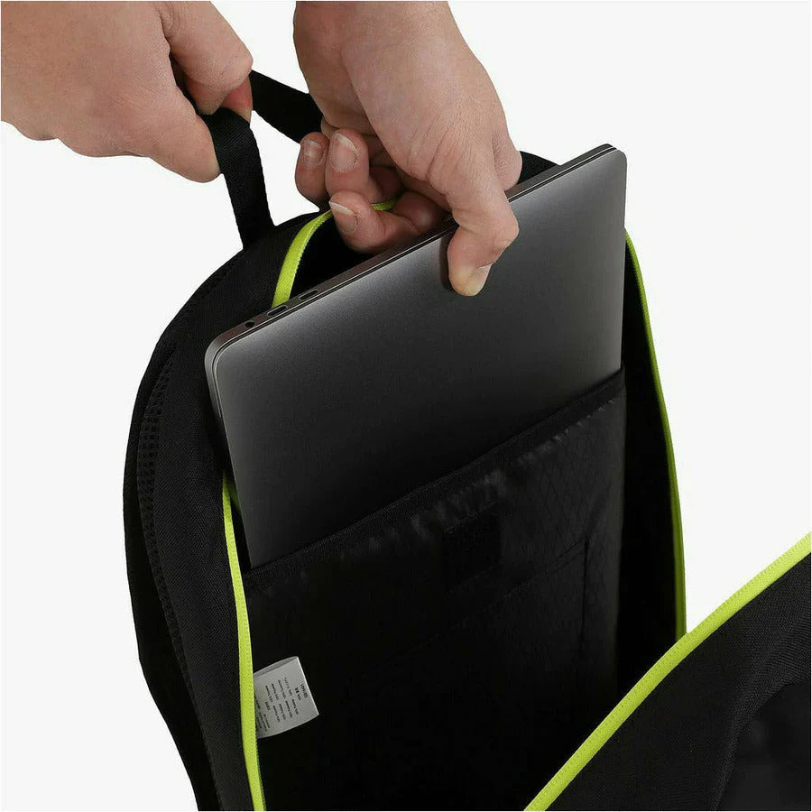 Keep your essentials close and handy with our AMCF1 Official Backpack. Available in a black colorway, this bag is made from a strong and durable fabric perfect for carrying around your goods. It features a secure, water resistant zip fastening, perforated padded straps for a comfy wear and decorated with lime essence accents.