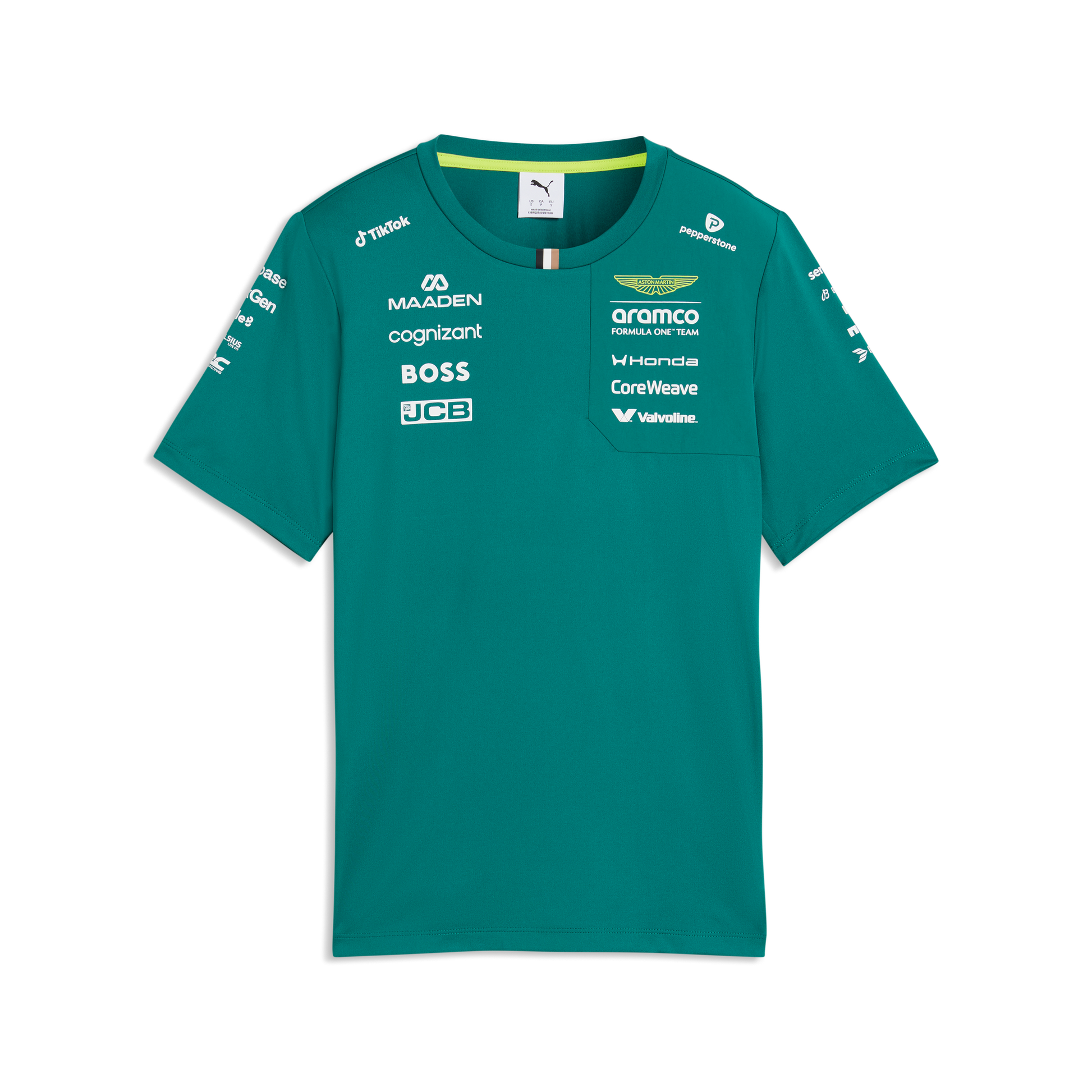 Support the 2026 season in style with the Aston Martin F1 Team 2026 Tee for women in Green Lux. Designed for comfort and a flattering fit, this official team T-shirt features a classic crew neck, modern cut, and Aston Martin Formula One Team branding, perfect for race days, casual wear, or everyday motorsport-inspired style.