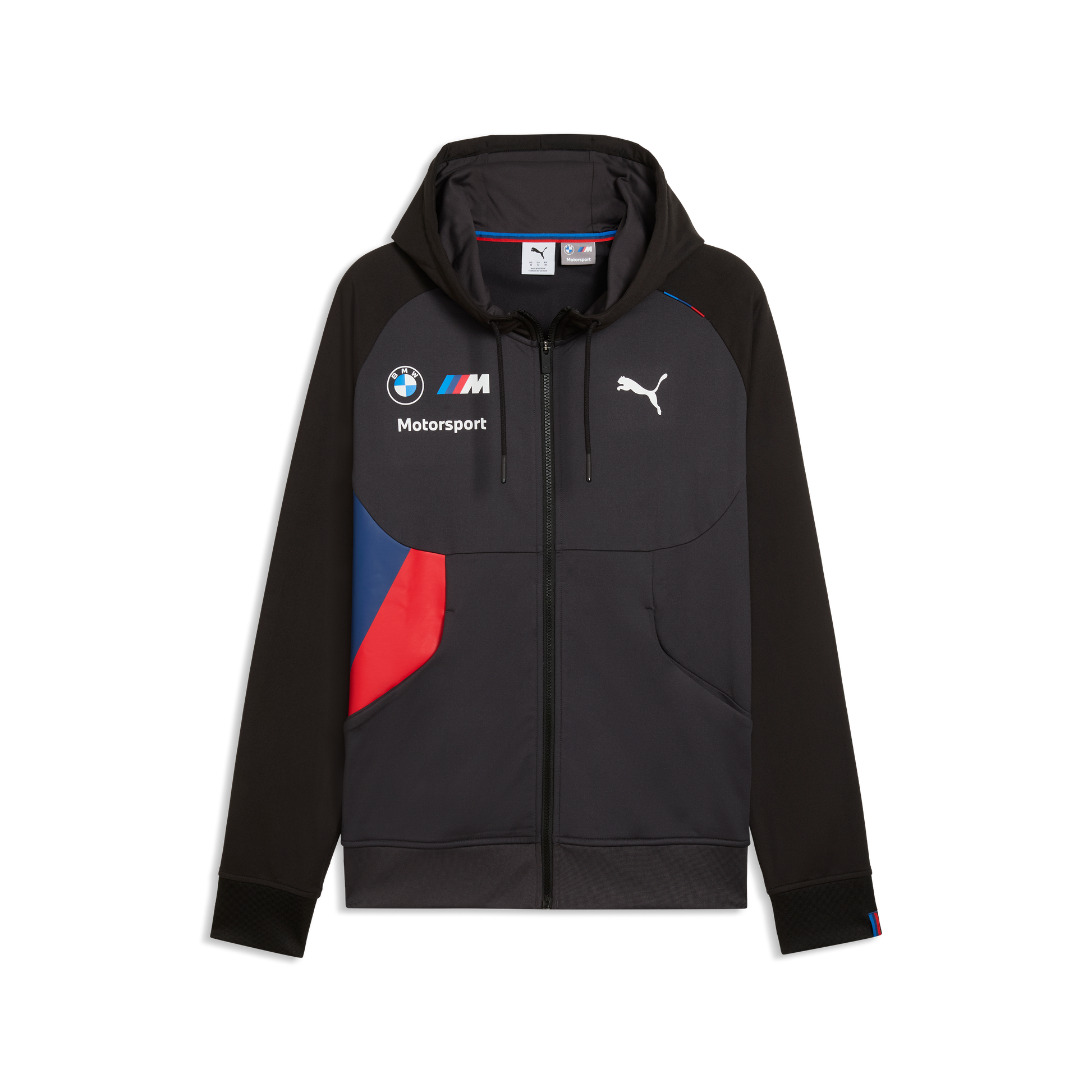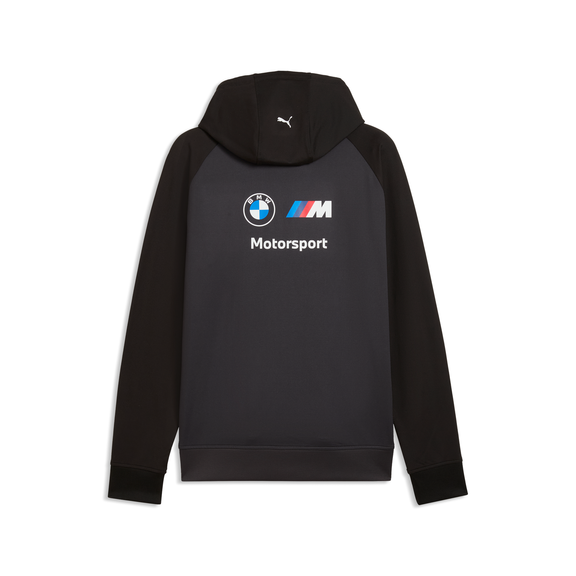 It features bold BMW Motorsport and PUMA branding, a cosy hood, and a modern athletic fit — perfect for race weekends, everyday wear or casual layering.