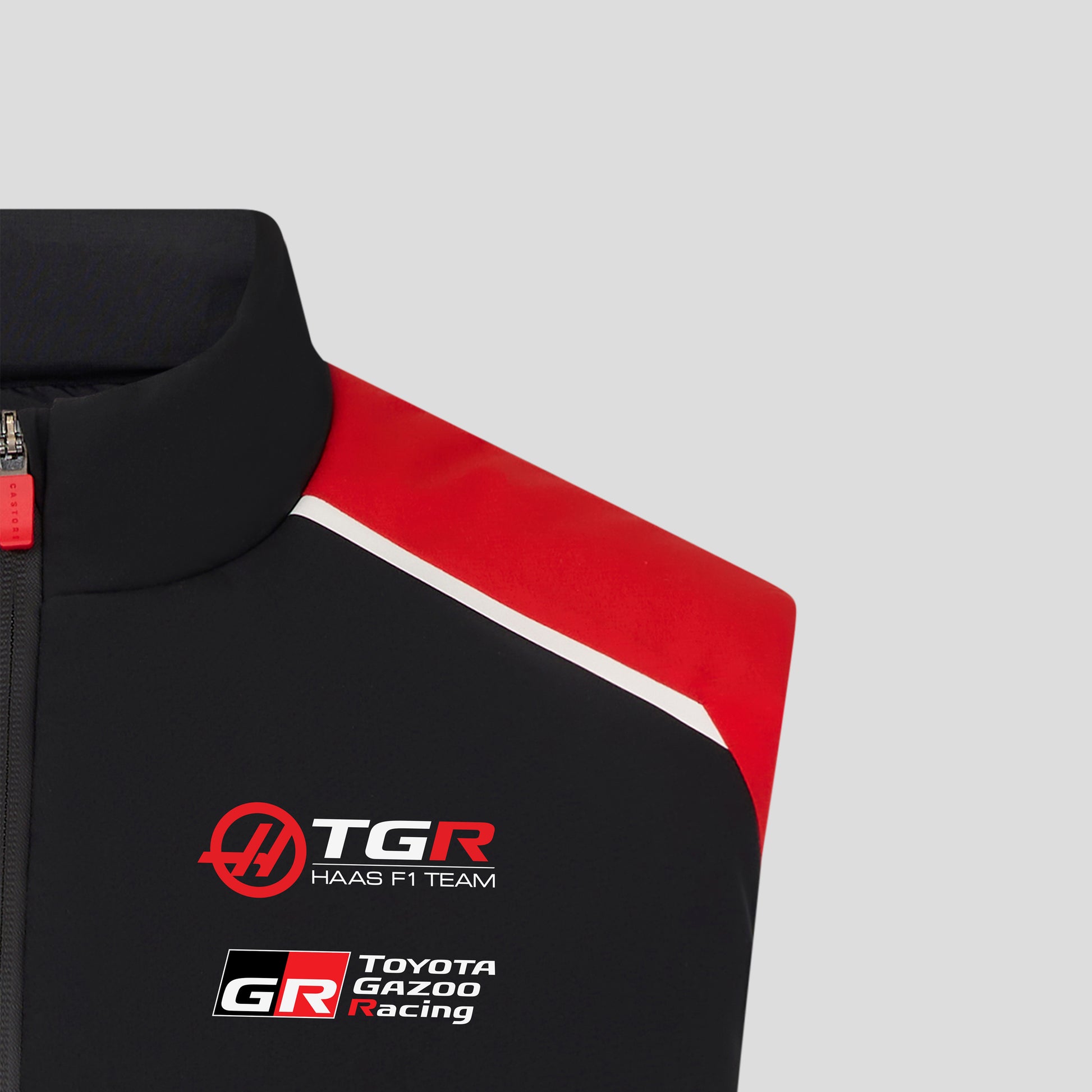 The Haas F1 Team 2026 Gilet - Unisex Caviar / Flame Scarlet combines lightweight warmth with bold Formula 1 team style.