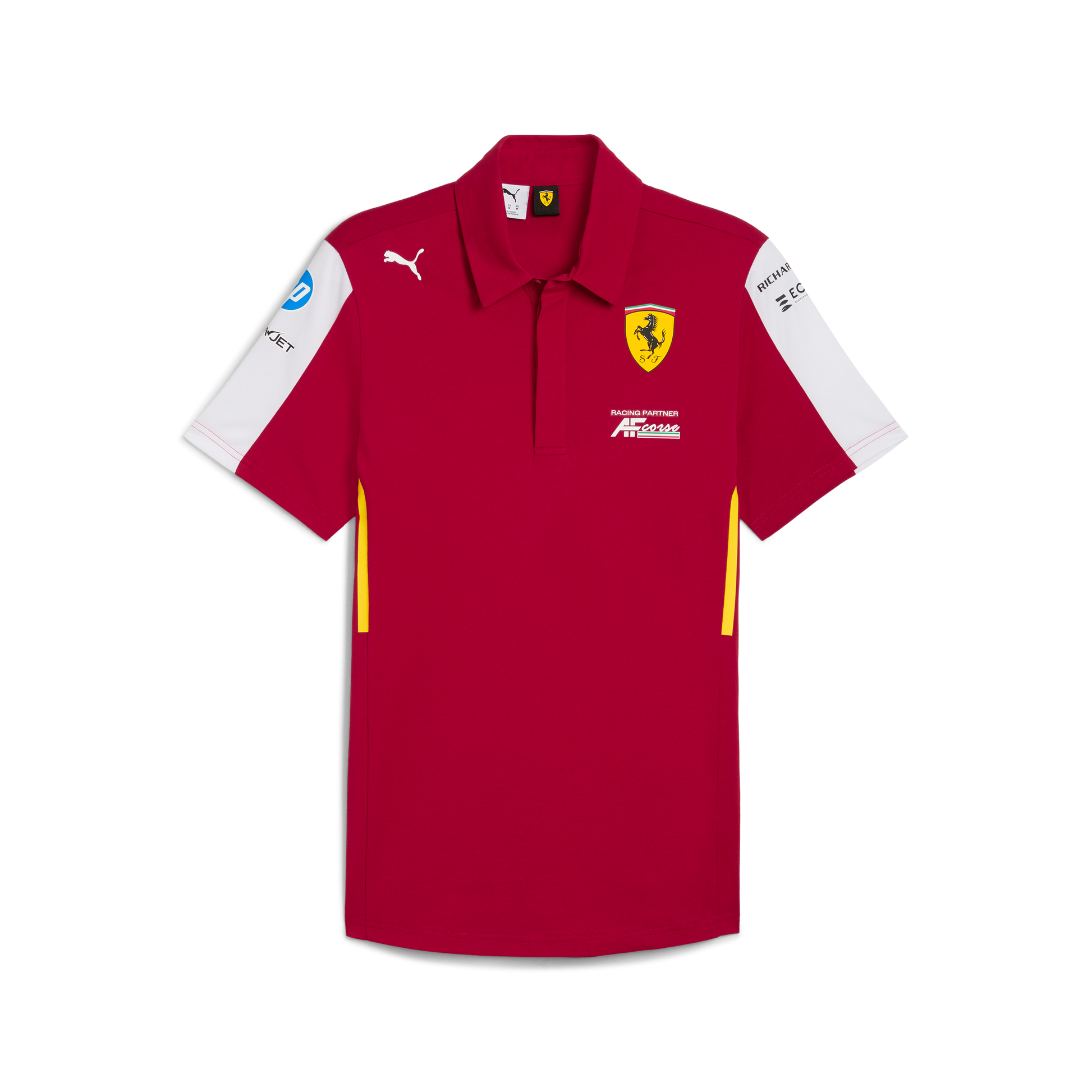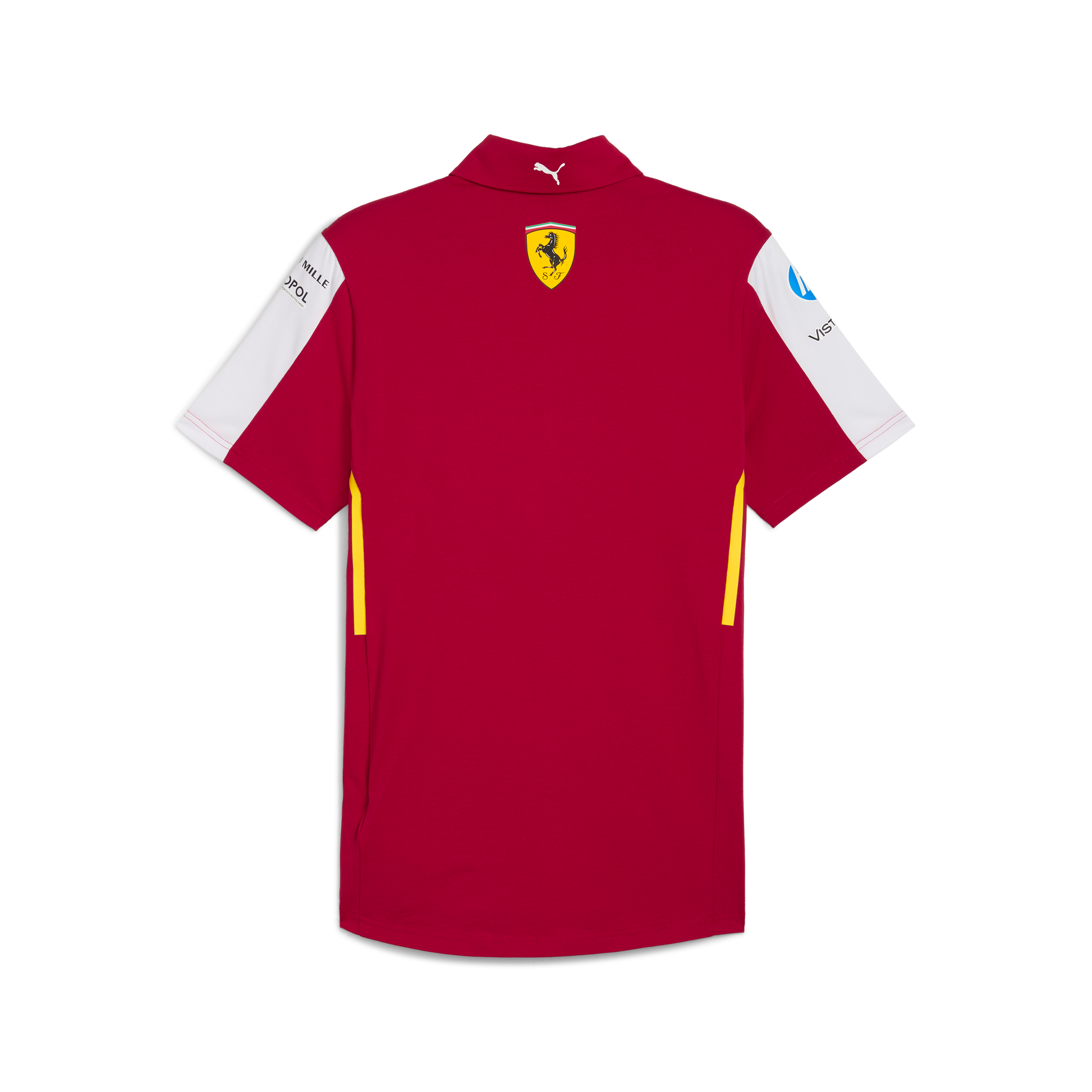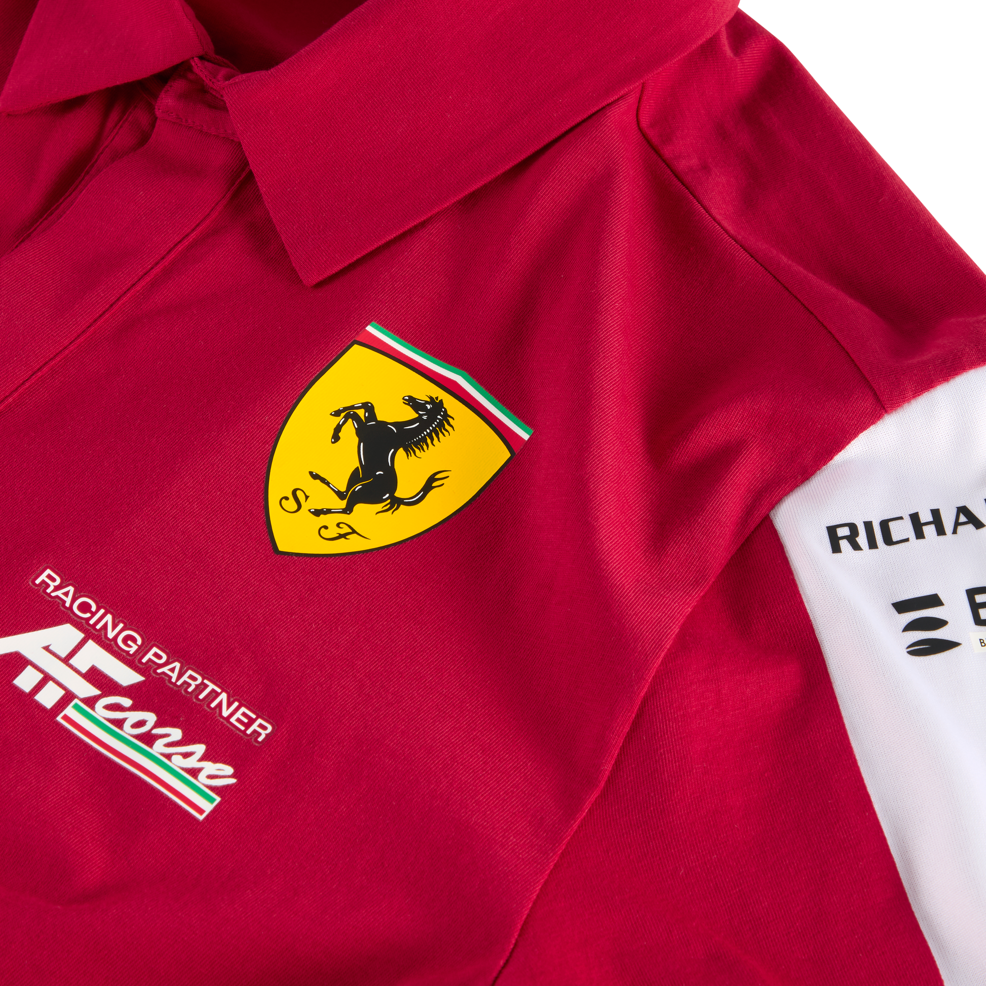 Ferrari LMH Hypercar Polo features iconic team and partner logos and finished in cherry red with white panels and yellow detailing. Great addition to the Ferrari merchandise collection and for fans of the Ferrari Hypercar, World Endurance and Le Mans
