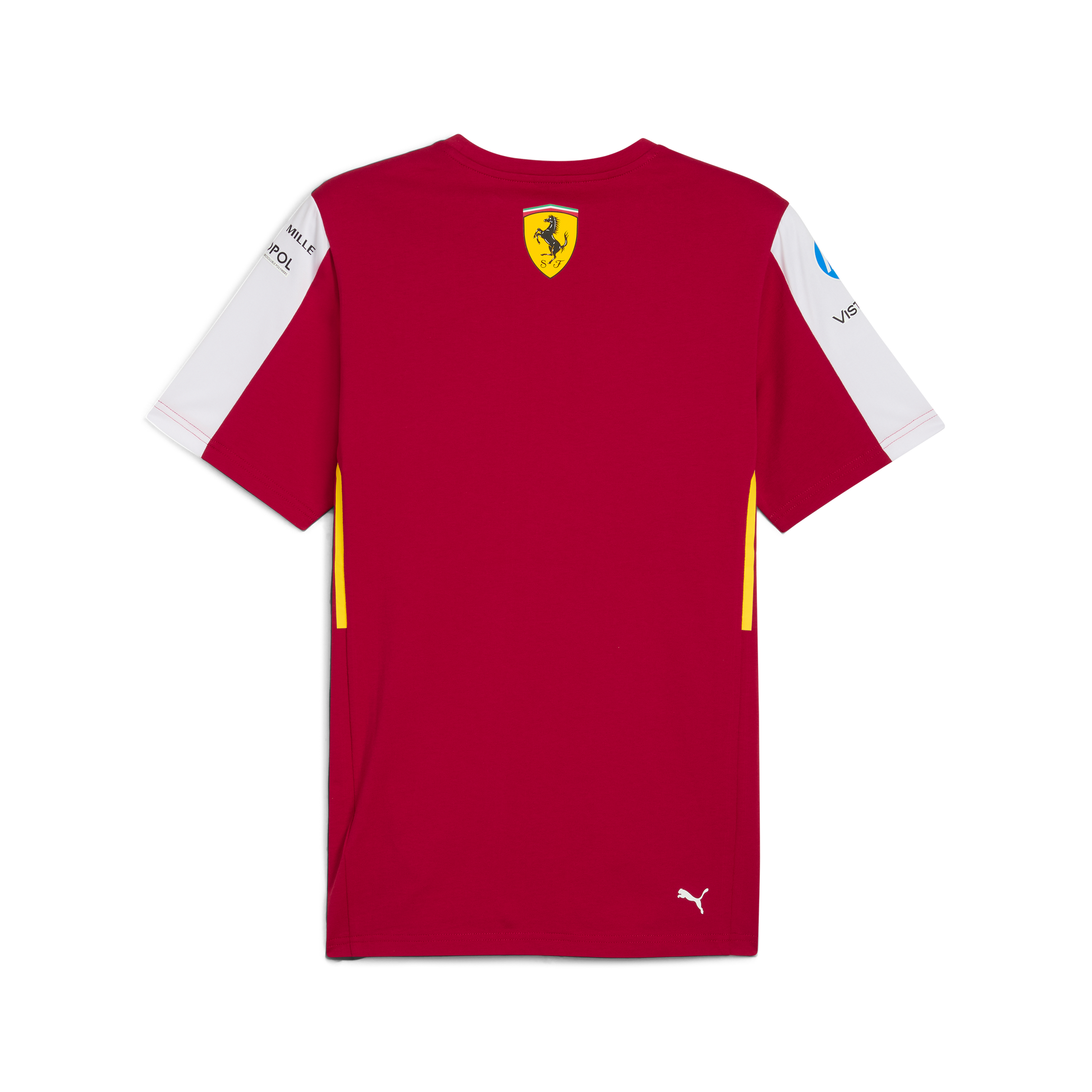 Ferrari LMH Hypercar T-Shirt features iconic team and partner logos and finished in cherry red with white panels and yellow detailing. Great addition to the Ferrari merchandise collection and for fans of the Ferrari Hypercar, World Endurance and Le Mans