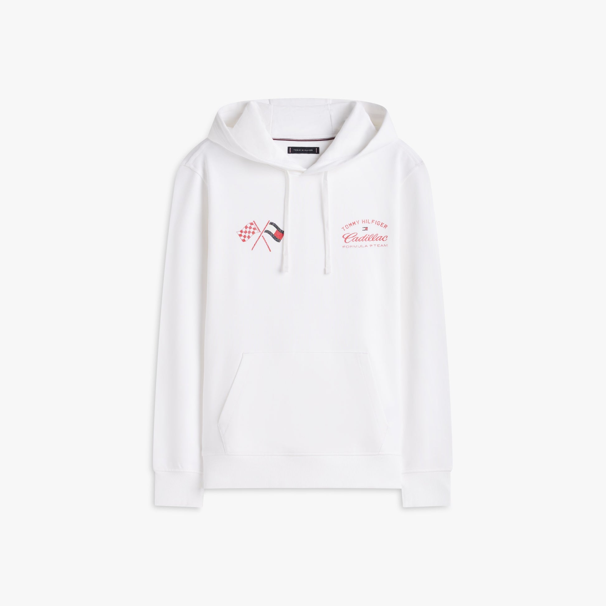 Capture the thrill of the race with the Cadillac F1 x Tommy Hilfiger Speedometer Hoodie for Men in crisp white. This premium men’s hoodie blends American motorsport-inspired design with Tommy Hilfiger’s signature quality.