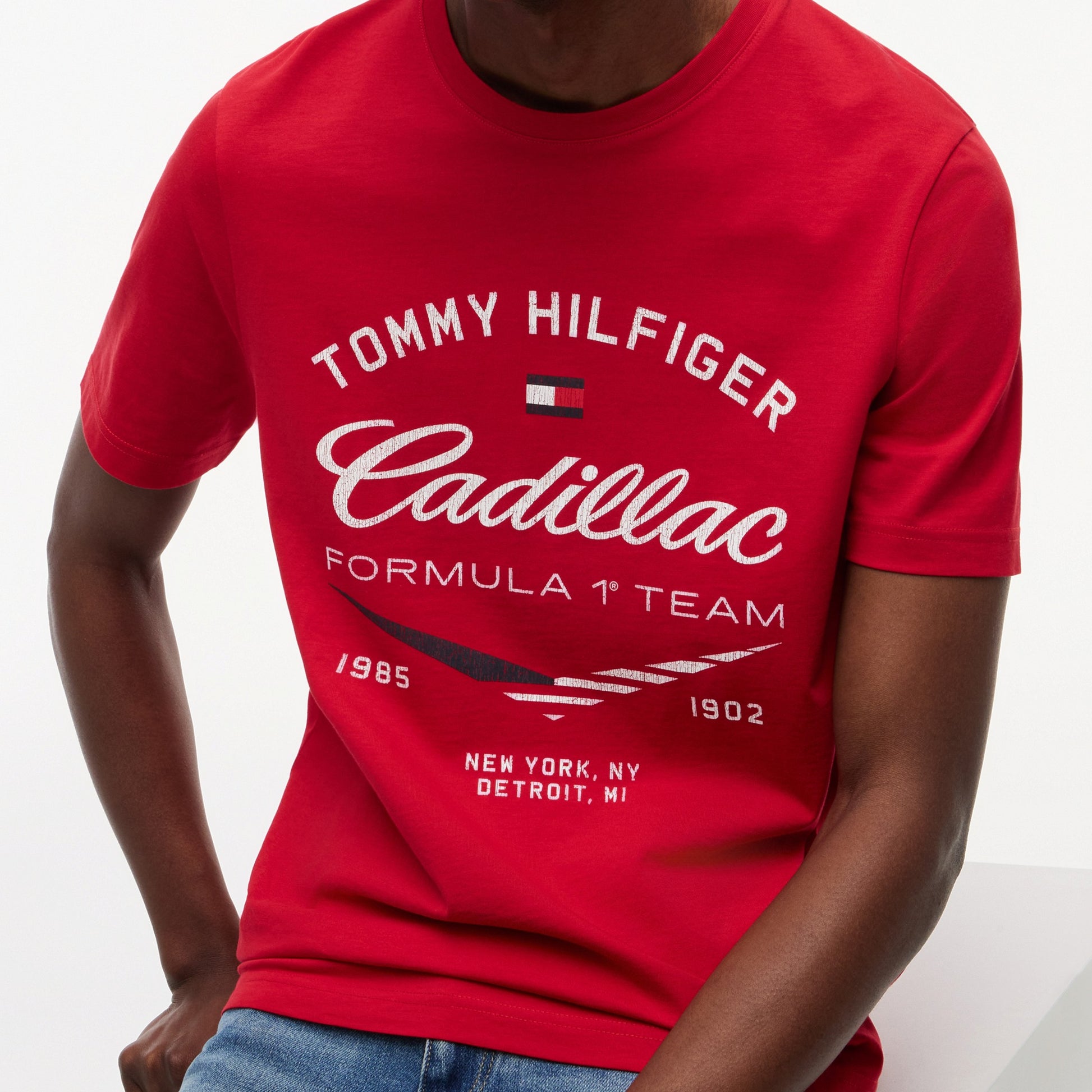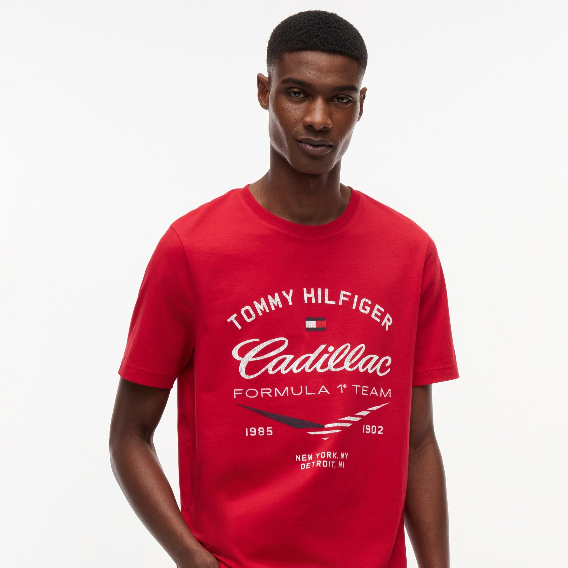 Show off motorsport style with the Cadillac F1 x Tommy Hilfiger Varsity Tee for Men in bold red. This premium men’s T-shirt blends classic varsity-inspired design with iconic Tommy Hilfiger x Cadillac Formula 1 Team branding for standout casual appeal.