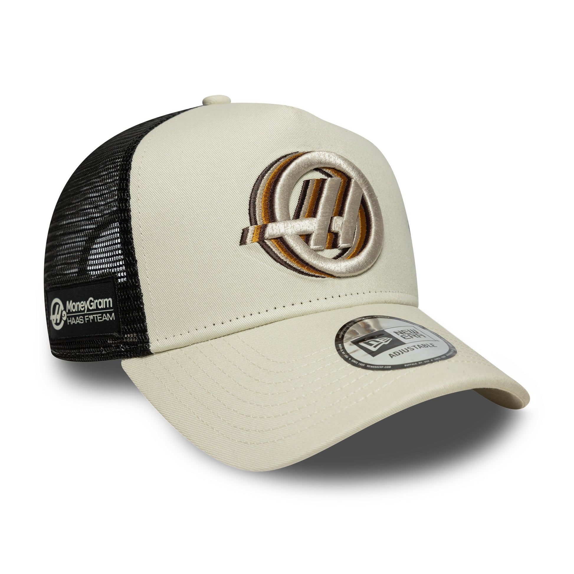 The Haas F1 Seasonal 9Forty Cap Trucker Cap Adults - Ivory combines bold Formula 1 style with breathable comfort.