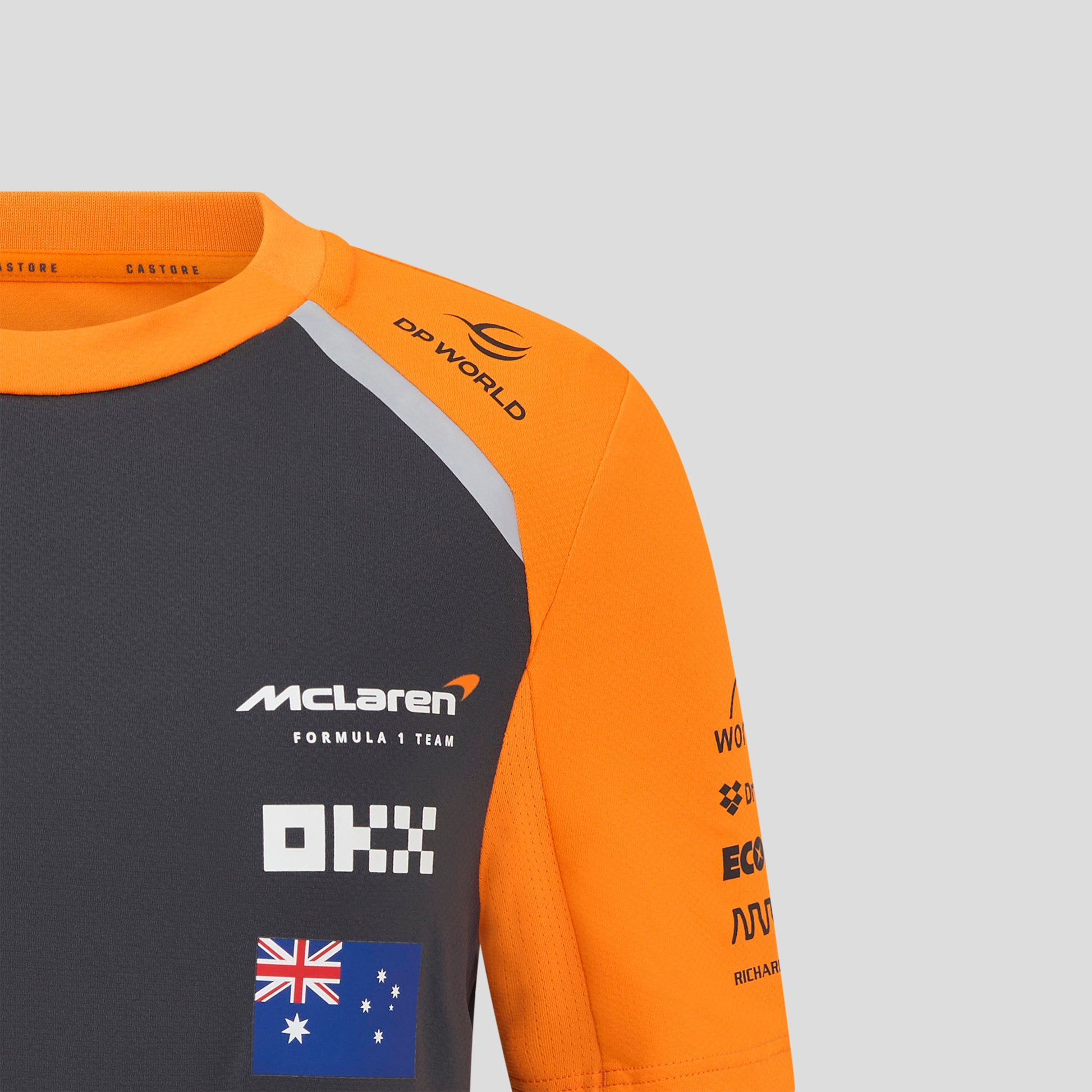 Get behind one of the grids brightest young talents in Oscar Piastri's 2025 Kids Team Set up tee. You'll see him wearing this breathable, modern piece all throughout the 2025 Formula One season. Available in both Papaya and Anthracite