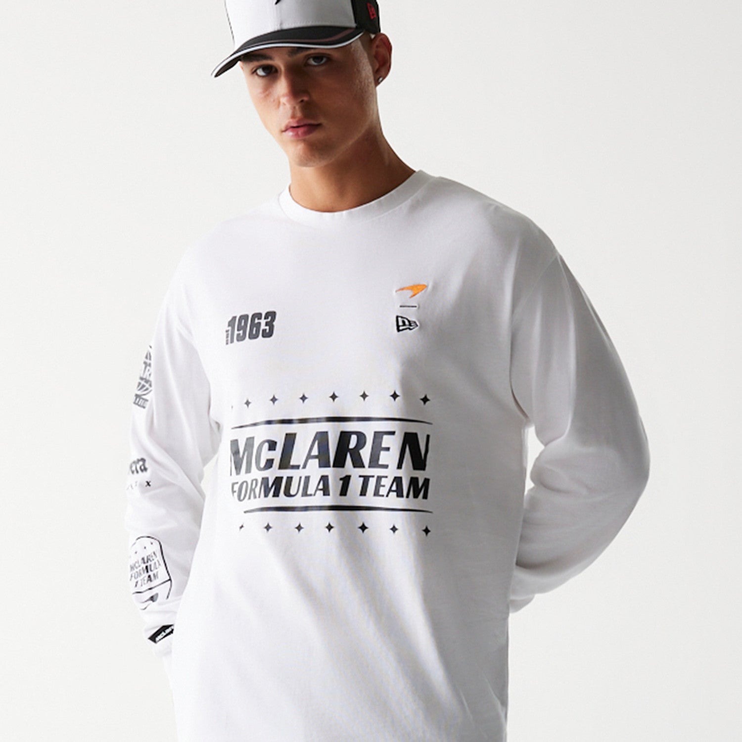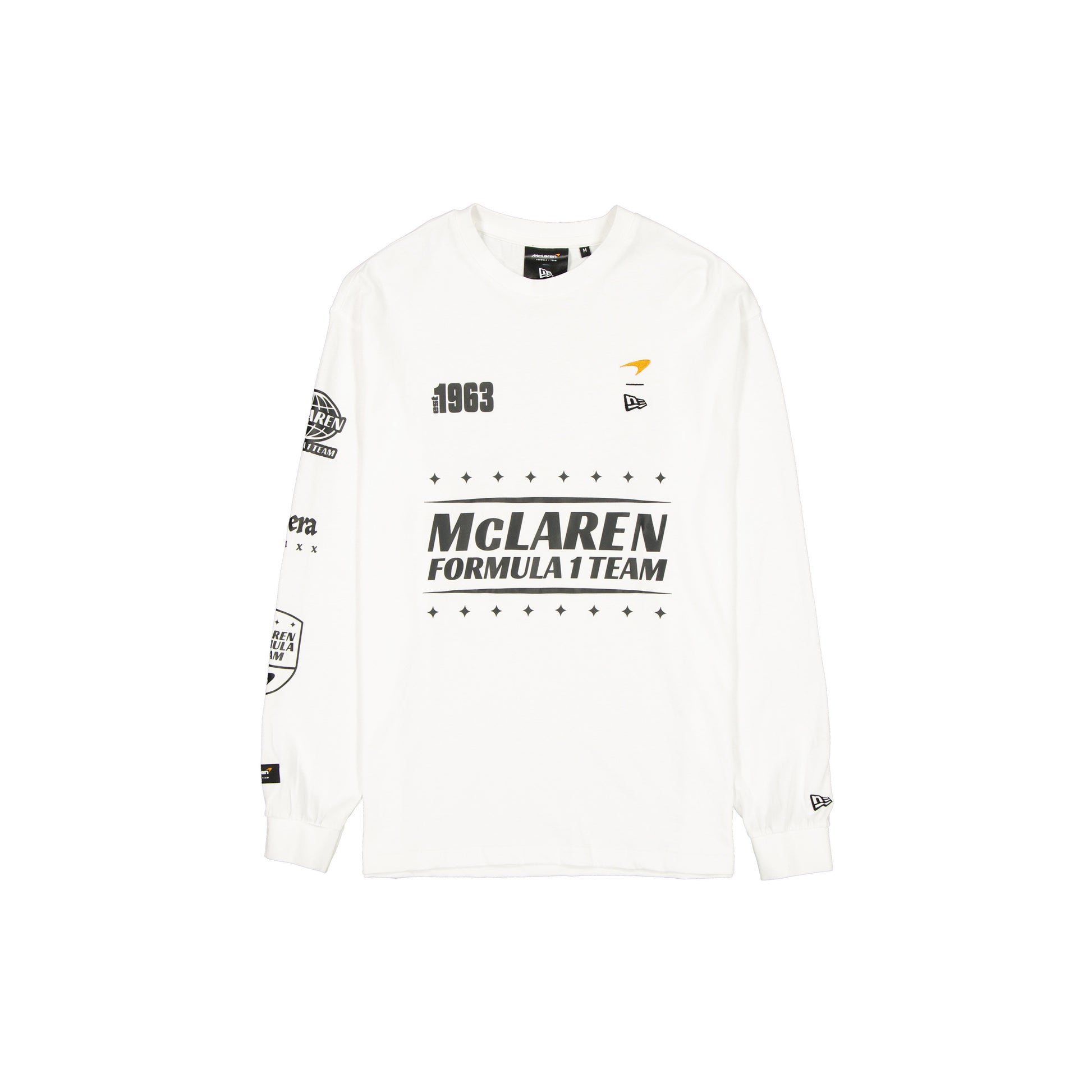 McLaren F1 Team long sleeve racing tee. Casual racing inspired long sleeve tee shirt for McLaren F1 Team fans. Available in black or white