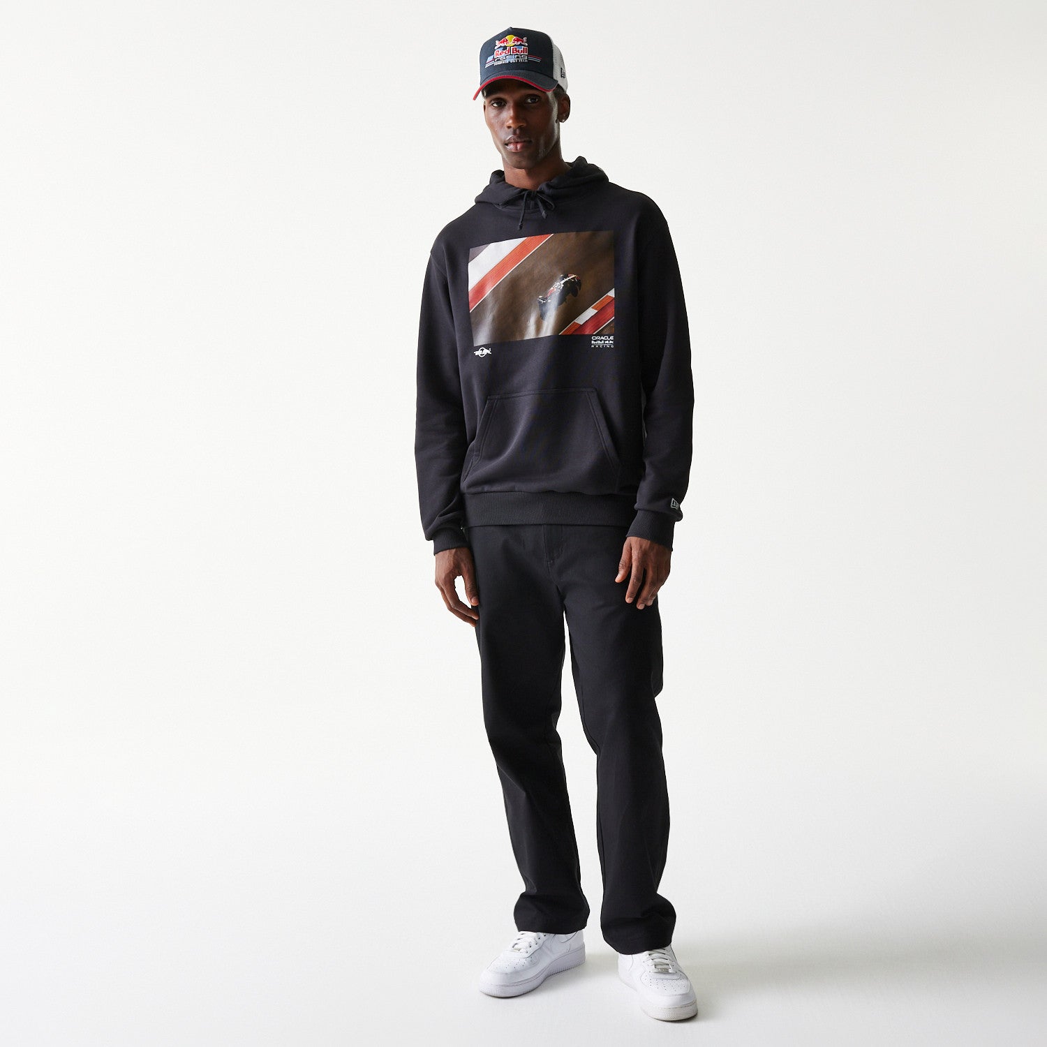 Red Bull F1 Team relaxed oversized french terry cotton hooded sweater with Oracle Red Bull Racing logo. Available in Black or Grey. Essential large logo Hoodie for Red Bull fans.