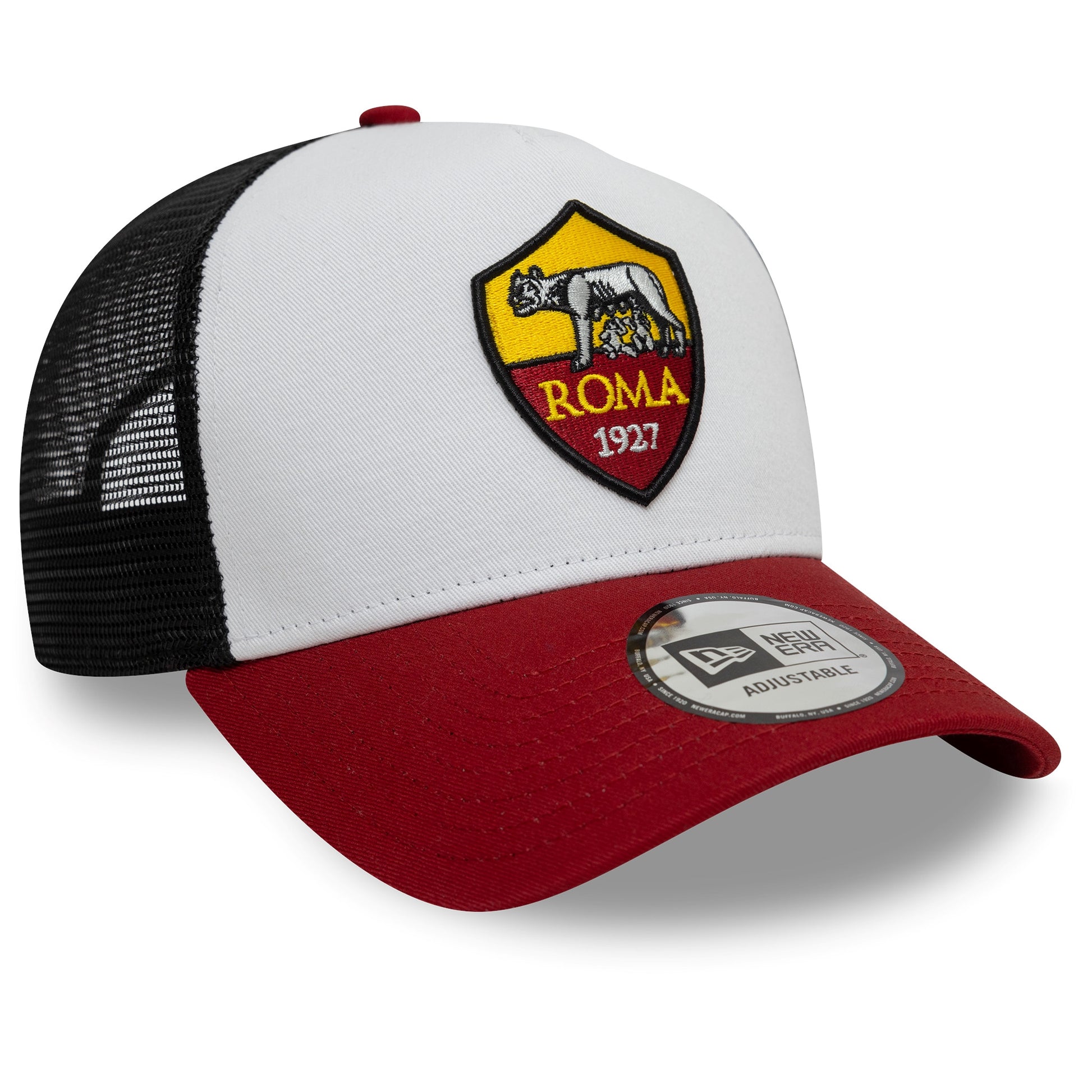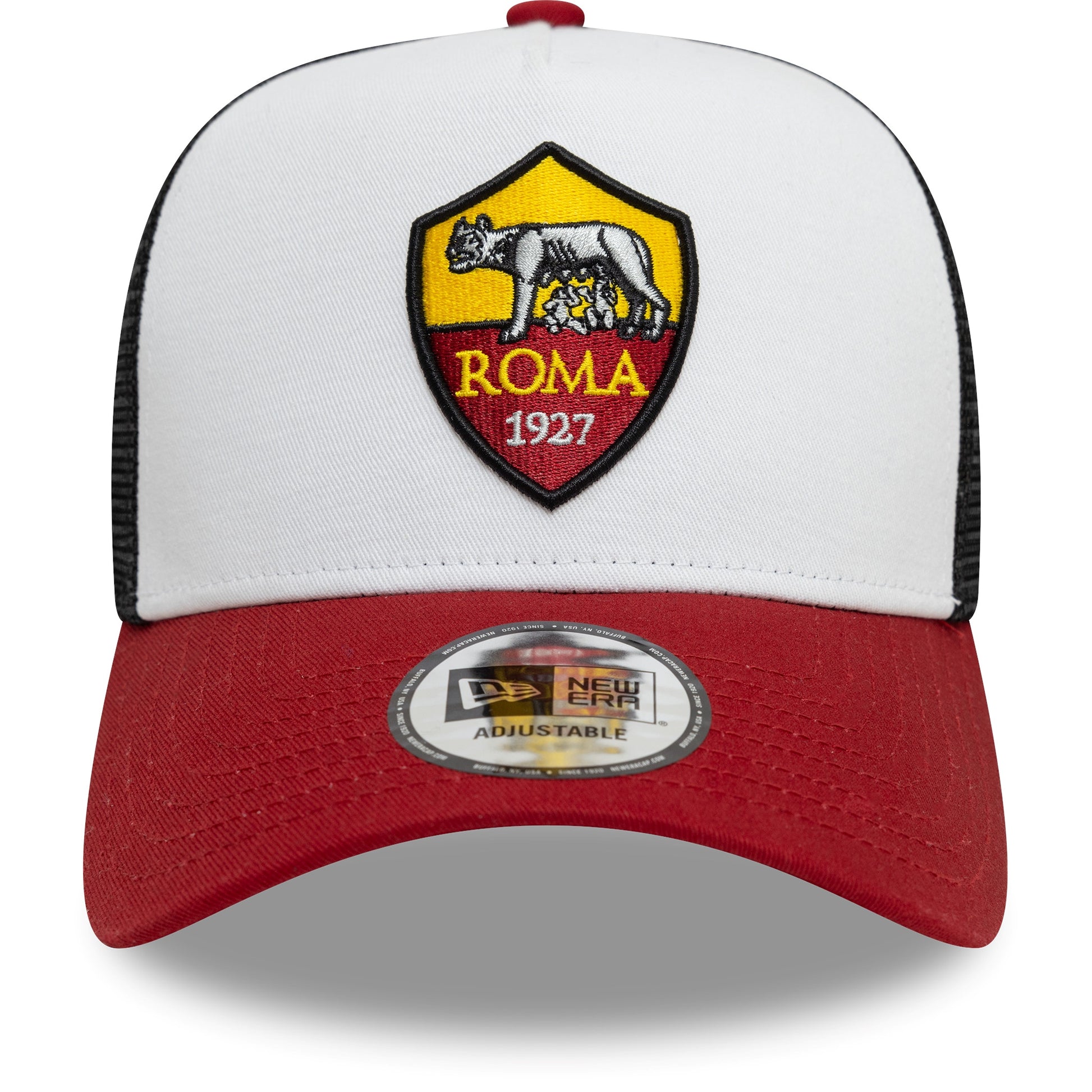 The white panel on the front makes the AS Roma badge really pop. Complimented by the red peak and black cooling trucker mesh. Made by and featuring the New Era Flag.