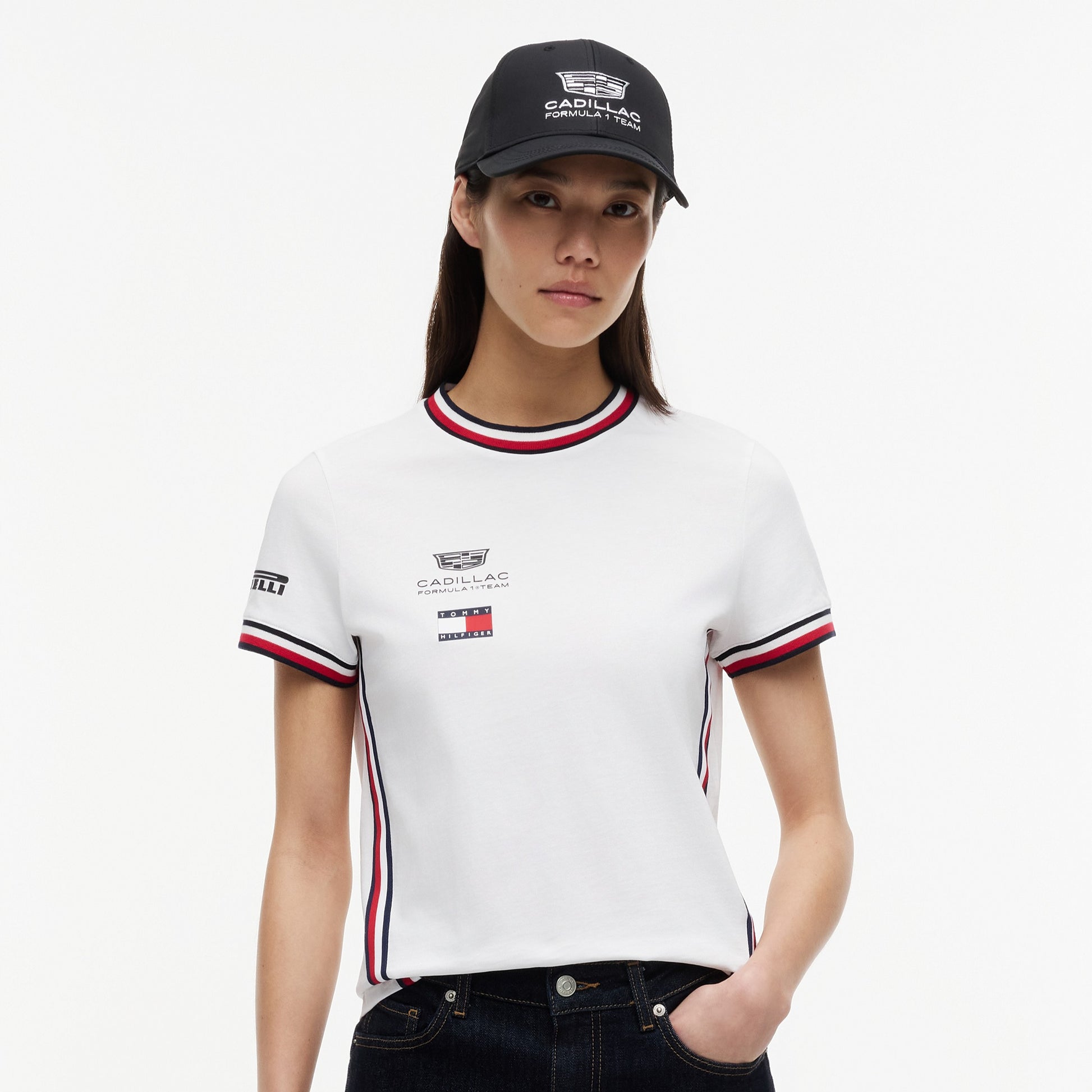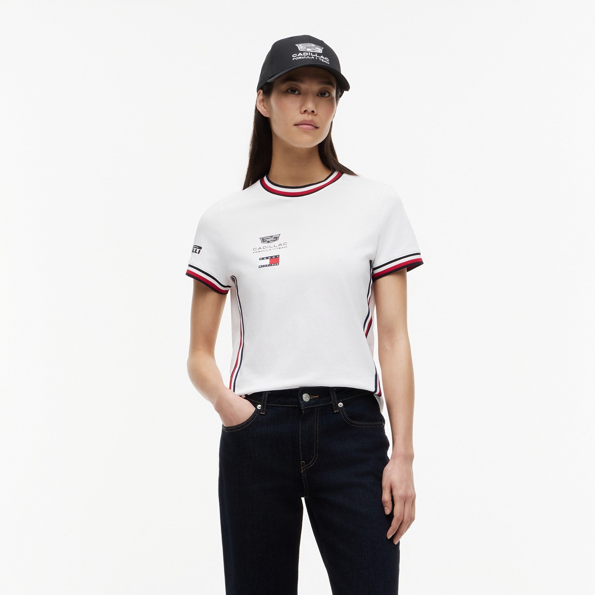 Show your support for the Cadillac Formula1 Team in style with the Cadillac F1 Team 2026 x Tommy Hilfiger Cropped Tee for Women in crisp white. This premium women’s tee blends bold American motorsport-inspired design with iconic Tommy Hilfiger fashion, creating a standout piece for race weekends or everyday wear.