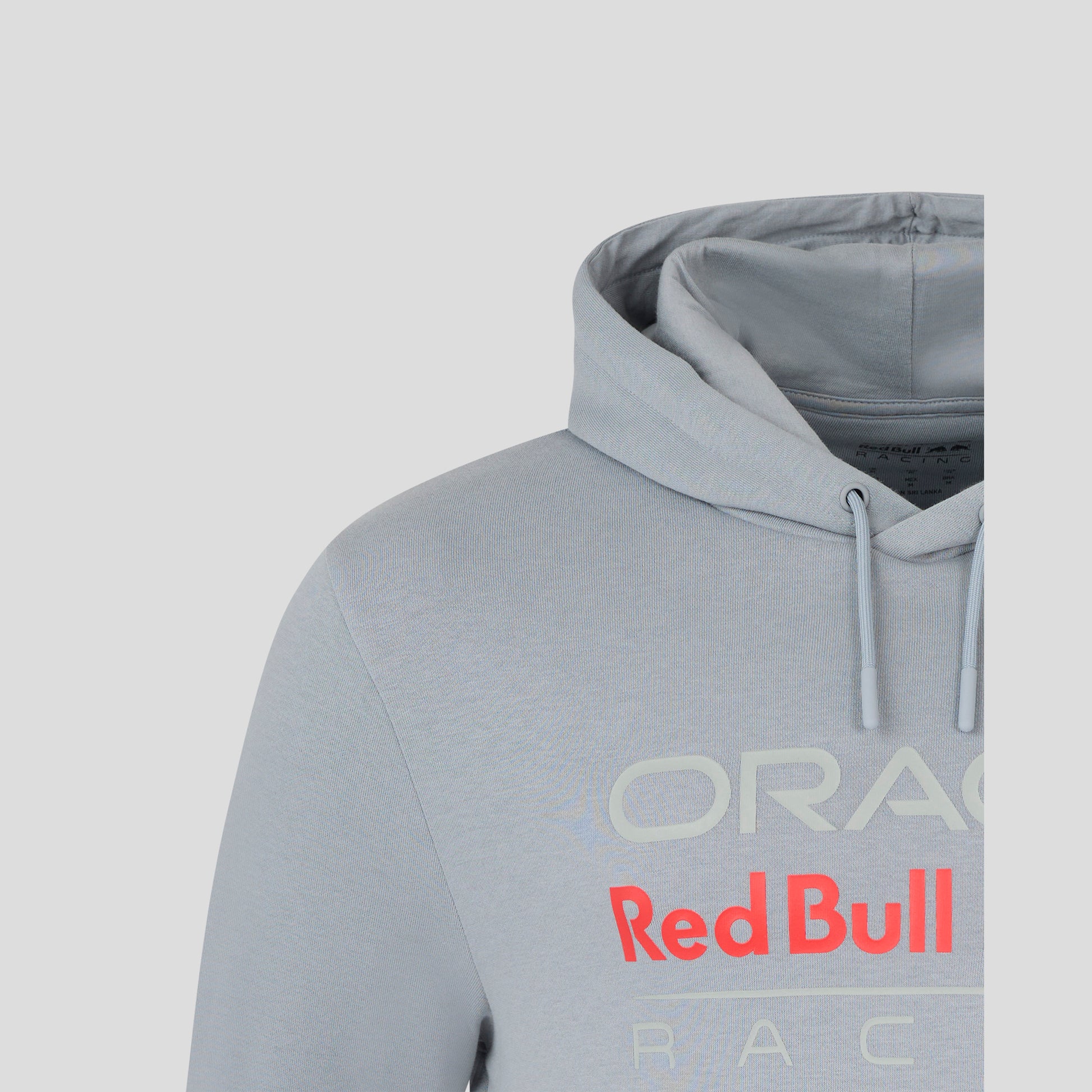 Oracle Red Bull Adults Large Logo Hoodie. ORBR Red Bull unisex hoody featuring large Oracle RedBull racing logo. This casual fanwear for the RedBull Formula 1 fan is in Weathervane Grey but is also available in Night Sky & Skipper Blue